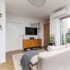 Finisajele sunt moderne, mobilierul este elegant si de calitate, iar dotarile sunt complete: incalzire prin pardoseala cu centrala proprie, ferestre tripan, contorizare separata utilitati, aer conditionat, masina de spalat vase, masina de spalat rufe, frigider, plita, cuptor si TV smart. Totul este gandit pentru confort si eficienta, astfel incat noul proprietar sa se poata muta fara investitii suplimentare.