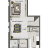 Parter: la intrare avem un hol, pe partea stanga o baie de serviciu cu geam, pe dreapta avem bucataria care este separata si poate ramane fie dechisa, fie se poate inchide. Apoi spatiul continua cu un loc de luat masa, scarile interioare care permit amenajareaunei debarale, iar tot in fata avem livingul/camera de zi, o zona luminoasa si spatioasa cu ferestre mari care se continua cu iesirea in gradina.