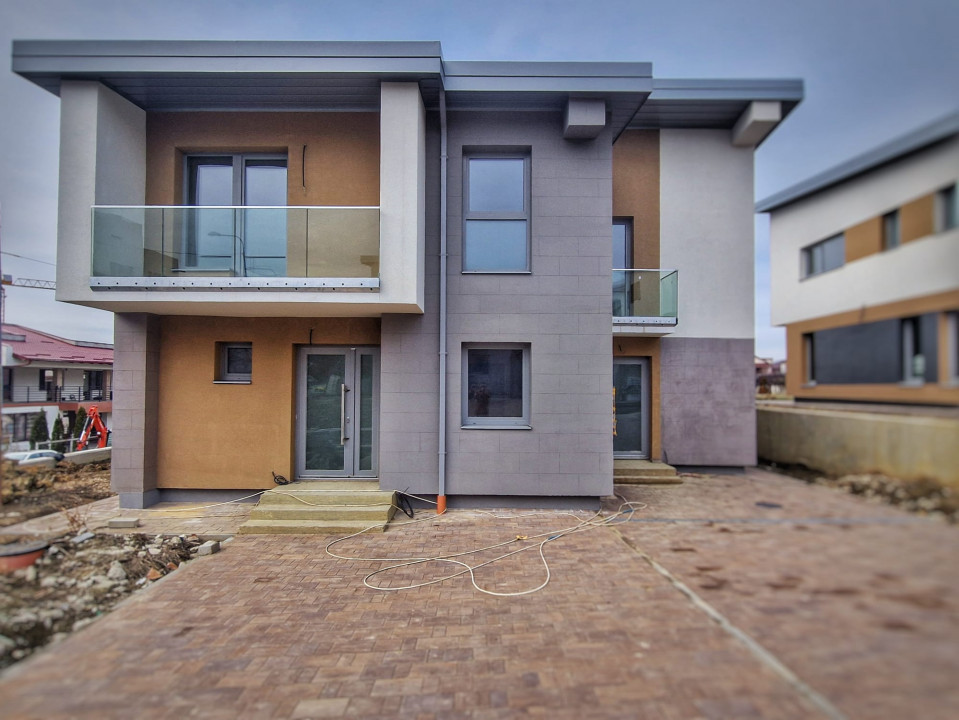 Casa este foarte bine construita, cu materiale premium, se preda la stadiul de semifinisat, cu pereti gletuiti, sapa turnata, instalatiile termice, electrice si sanitare trase pe pozitii, incalzirea se face prin pardoseala (sistem Uponor) cu pompa de caldura, ferestre tamplarie Rehau cu 3 sticle, izolatie exterioara de 20 cm, sistem pregatit pentru panouri fotovoltaice.